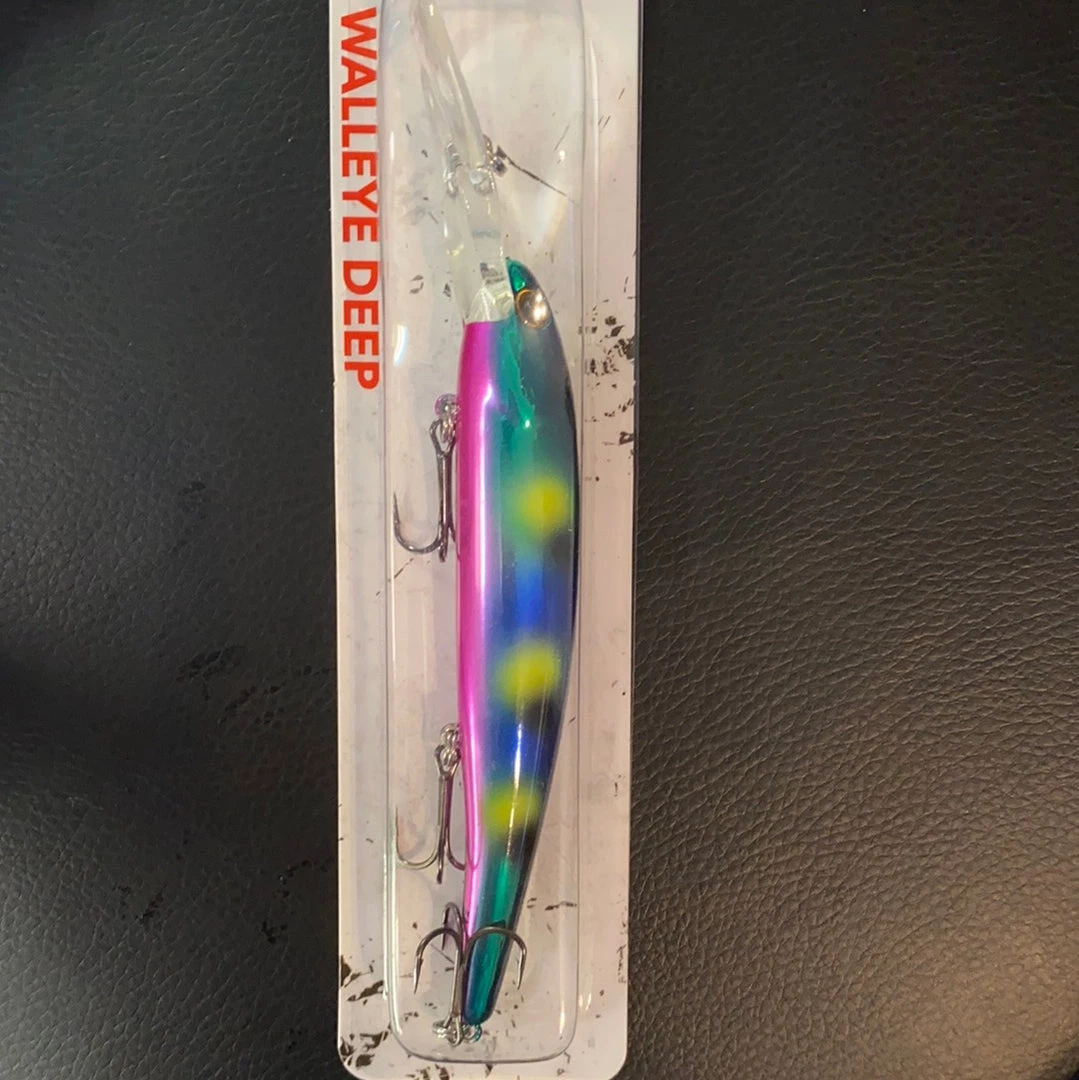 The Deep Walleye Bandit will troll down to 27′ and is a great lure for exploring deeper water. Walleye, zander and other predator fish love this slender minnow jerkbait. Measuring 4-3/4″ and weighing 5/8 oz, the Deep Walleye Bandit is a go-to fishing lure for anglers around the world. The round lip makes it dive quick and true every time.