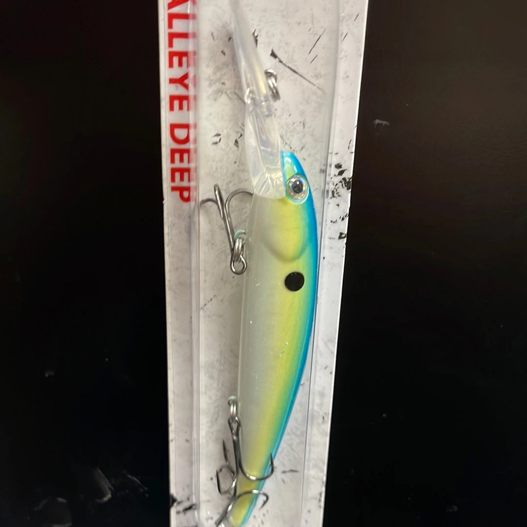 The Deep Walleye Bandit will troll down to 27′ and is a great lure for exploring deeper water. Walleye, zander and other predator fish love this slender minnow jerkbait. Measuring 4-3/4″ and weighing 5/8 oz, the Deep Walleye Bandit is a go-to fishing lure for anglers around the world. The round lip makes it dive quick and true every time.