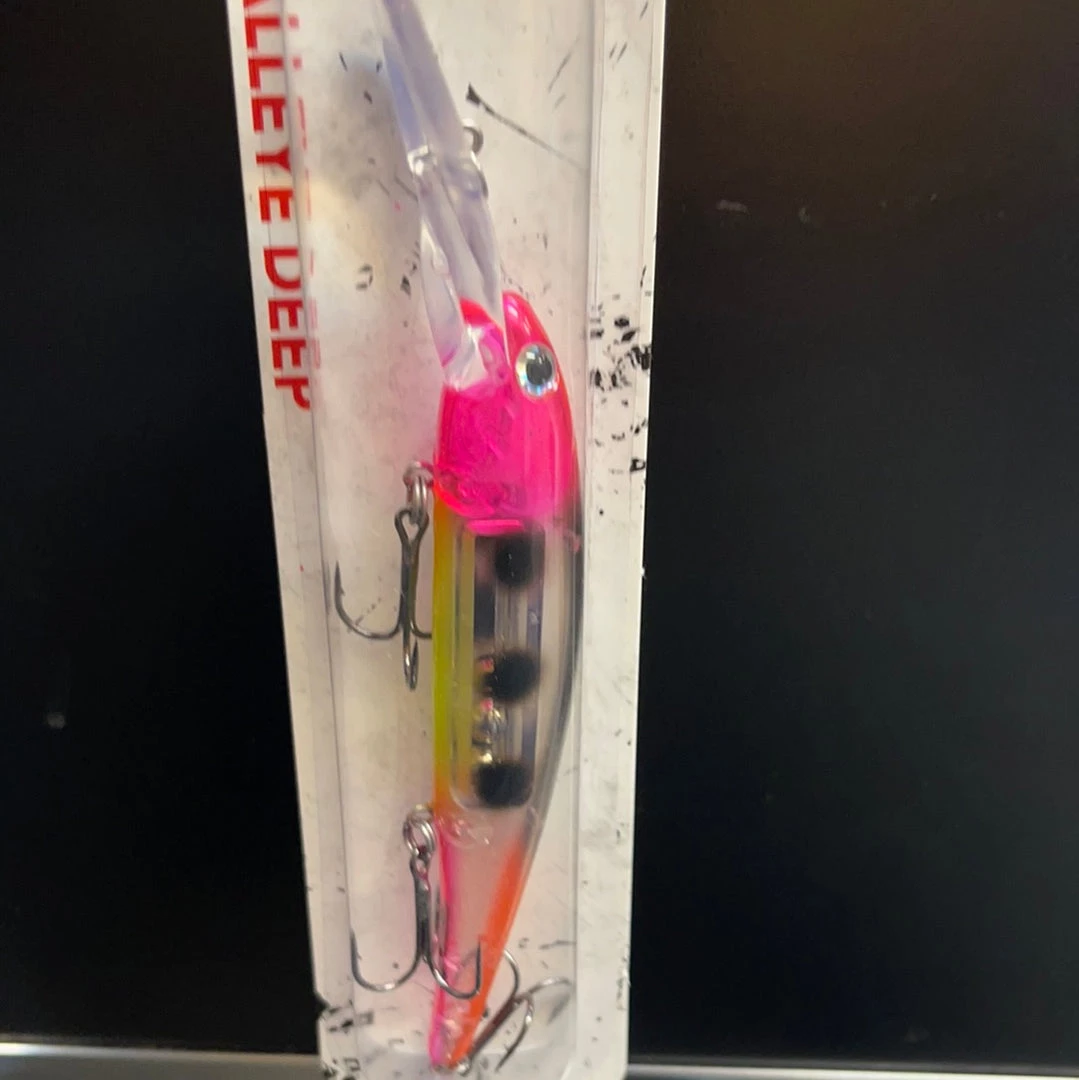 The Deep Walleye Bandit will troll down to 27′ and is a great lure for exploring deeper water. Walleye, zander and other predator fish love this slender minnow jerkbait. Measuring 4-3/4″ and weighing 5/8 oz, the Deep Walleye Bandit is a go-to fishing lure for anglers around the world. The round lip makes it dive quick and true every time.