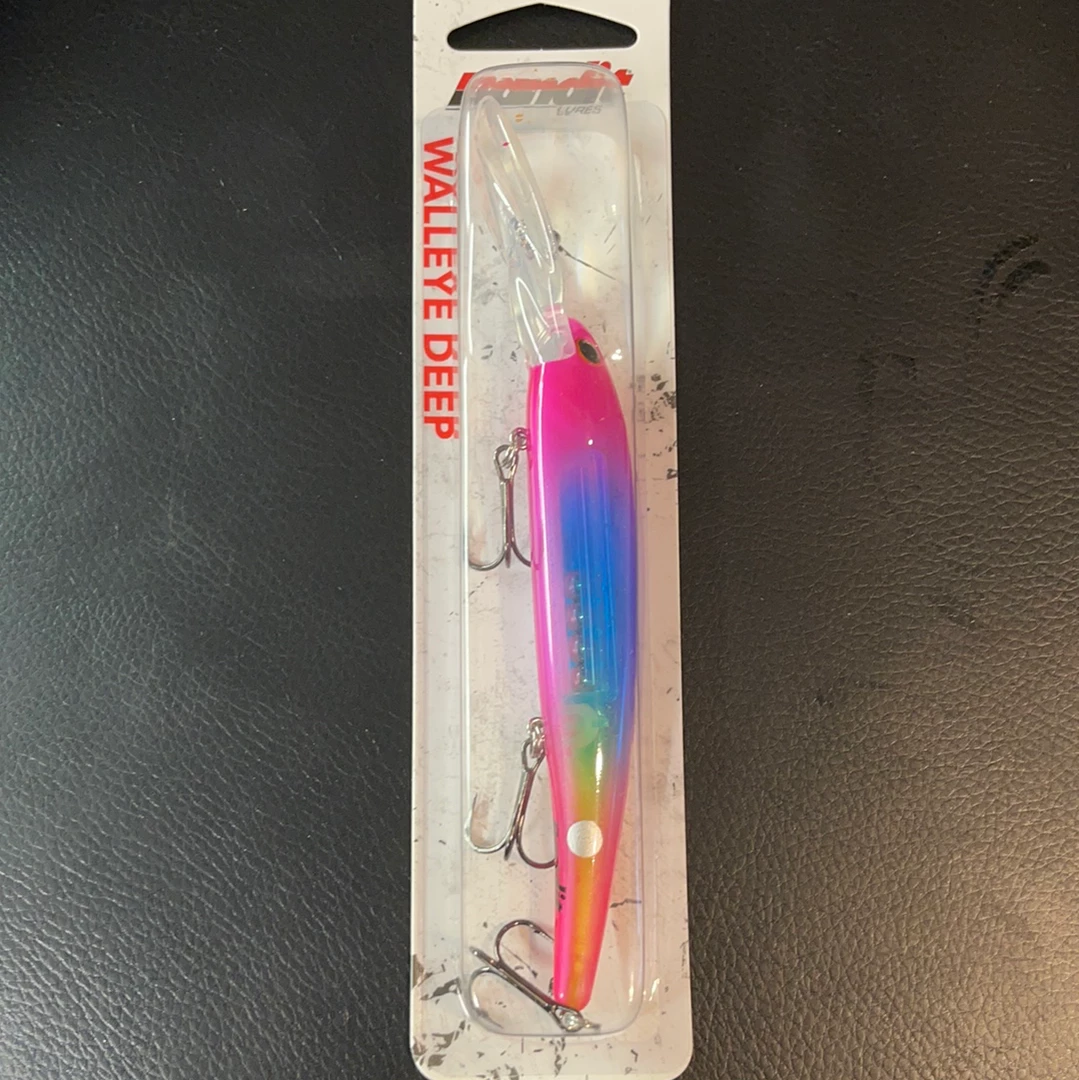 The Deep Walleye Bandit will troll down to 27′ and is a great lure for exploring deeper water. Walleye, zander and other predator fish love this slender minnow jerkbait. Measuring 4-3/4″ and weighing 5/8 oz, the Deep Walleye Bandit is a go-to fishing lure for anglers around the world. The round lip makes it dive quick and true every time.