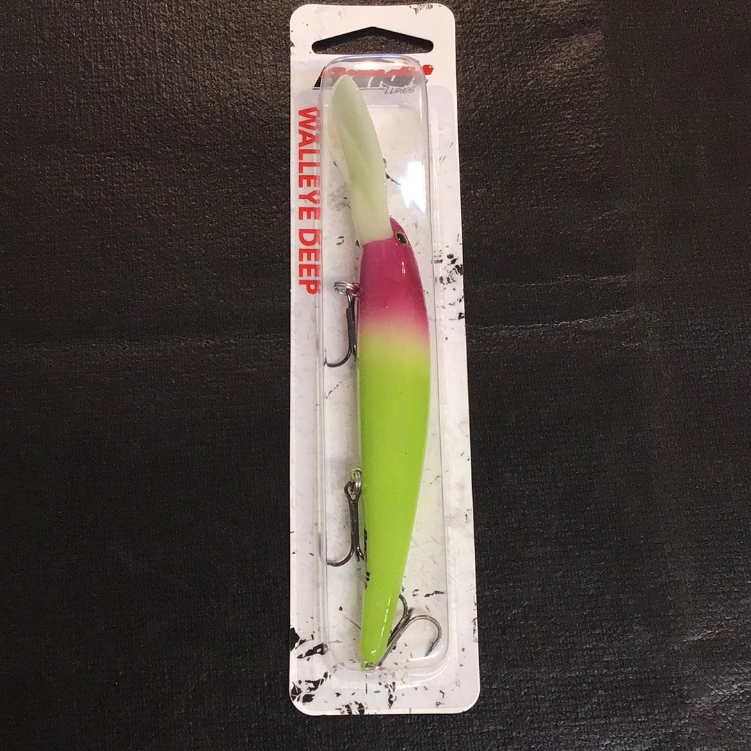 The Deep Walleye Bandit will troll down to 27′ and is a great lure for exploring deeper water. Walleye, zander and other predator fish love this slender minnow jerkbait. Measuring 4-3/4″ and weighing 5/8 oz, the Deep Walleye Bandit is a go-to fishing lure for anglers around the world. The round lip makes it dive quick and true every time.