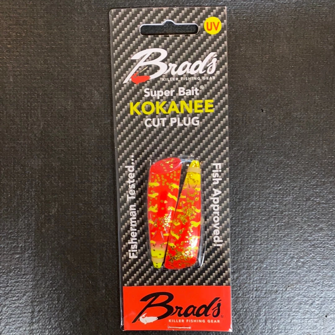 Brad’s introduces the 2″ Kokanee Cut Plug. The new smaller design is directly patterned after the legendary Super Cut-Plug with the same killer rotating action. The Kokanee Cut plug features the same bait cavity to fill with your favorite flavor or scent. The single pack comes ready to fish with two #4 red VMC octopus style hooks and 36″ of 15lb test leader. These are perfect for Kokanee, Cut Throat, Coho, Trout, Salmon and Steelhead.