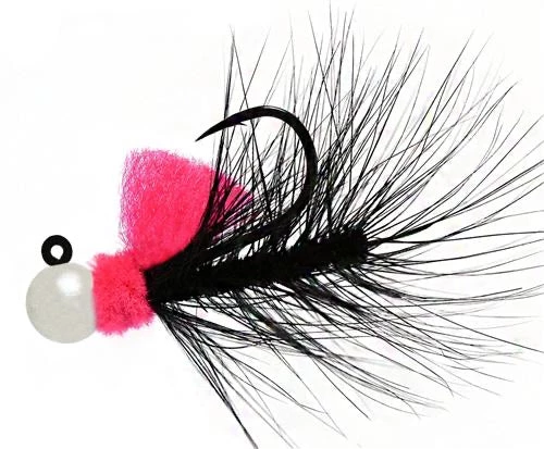 Features Include: Customized Gamakatsu Hooks with 2x Strong Wire, Premium Feathers, UV & Fluorescent Dyes & Pigments, Powder Painted Heads With a Scent Free Finish, Unpainted Eyes on Every Jig, Patented Tail Section and Hand Tied & Inspected.