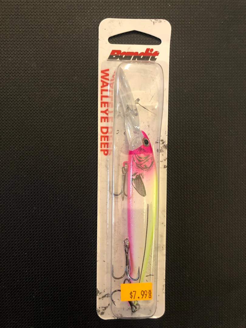 The Deep Walleye Bandit will troll down to 27′ and is a great lure for exploring deeper water. Walleye, zander and other predator fish love this slender minnow jerkbait. Measuring 4-3/4″ and weighing 5/8 oz, the Deep Walleye Bandit is a go-to fishing lure for anglers around the world. The round lip makes it dive quick and true every time.