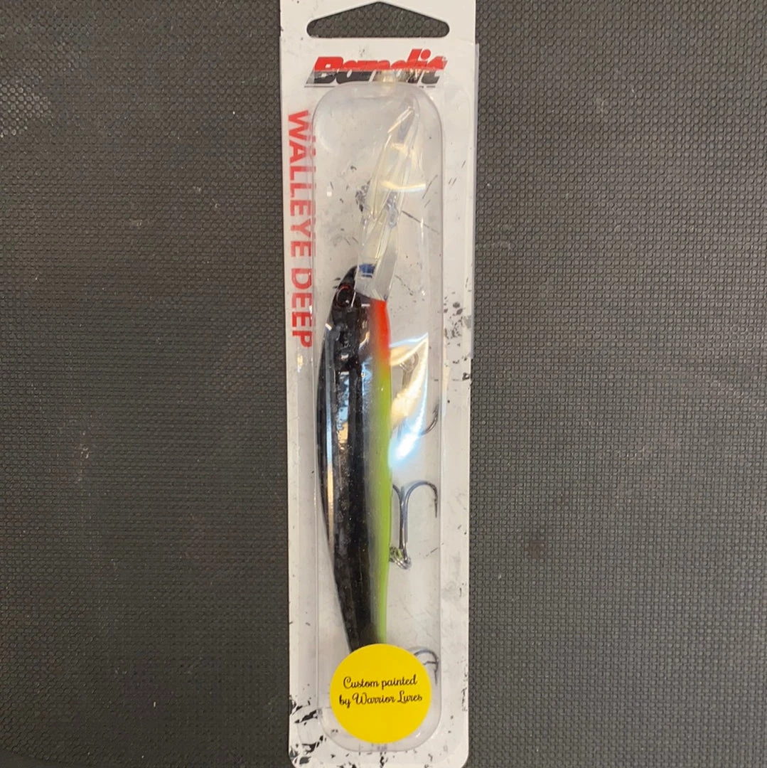 Features Include: Custom paint designs by Warrior Lures, Dives to 27 ft., Large round lip, Slender, minnow-jerkbait-styled body