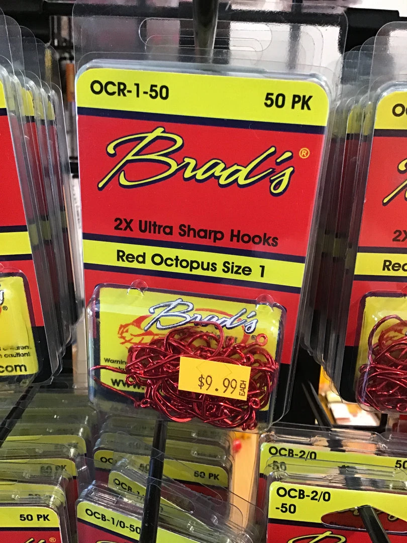 Brads red octopus size 2 2X ultra sharp hooks qty: 50 product #OCR-2-50