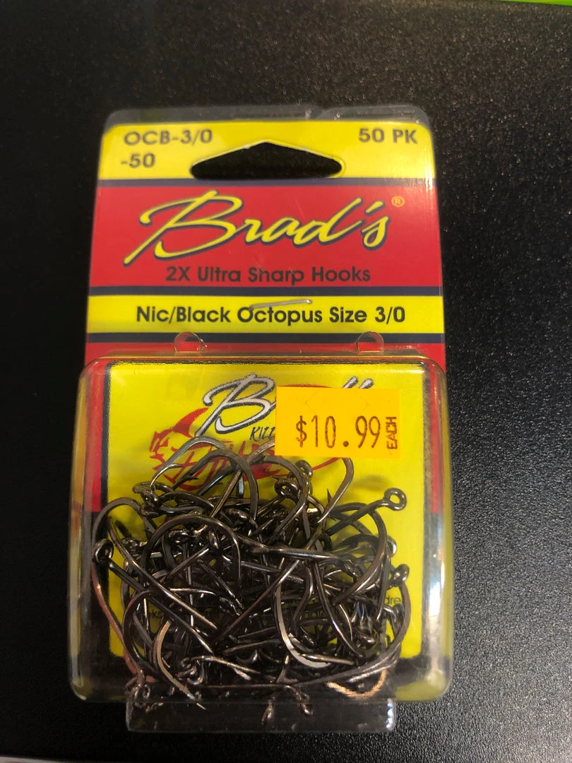 Brads nic/blk octopus hooks size 3/0 ultra sharp hooks 50ct OCB-3/0-50