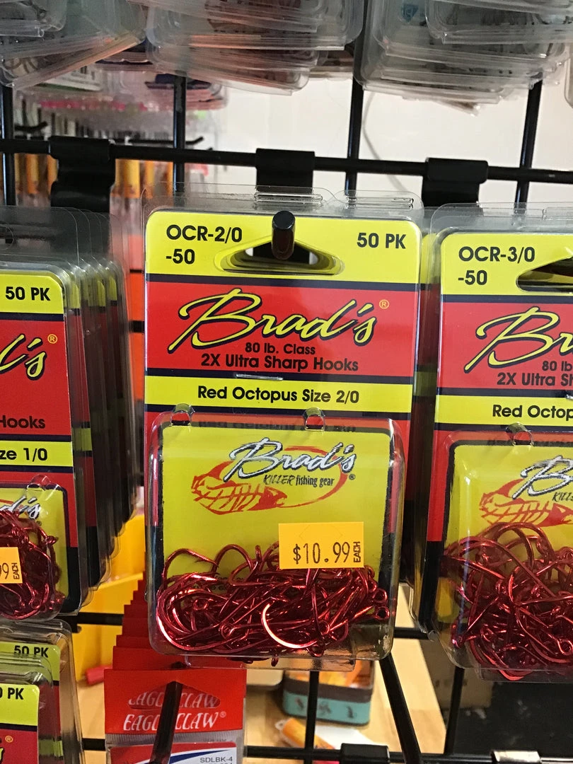 Brads red octopus size 2/0 2X ultra sharp hooks qty: 50 product #OCR-2/0-50