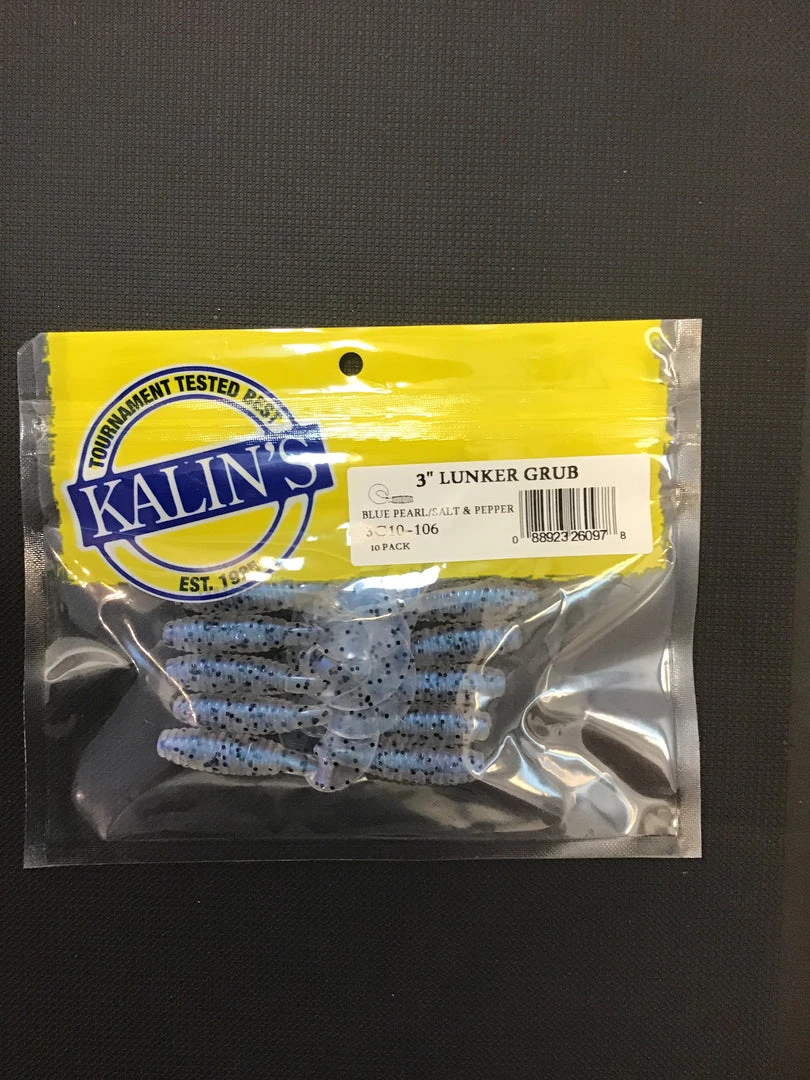 Kalin’s 3” Lunker grubs Blue pearl/ Salt & pepper