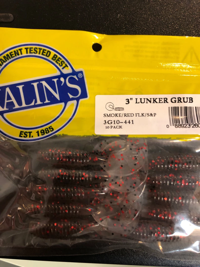 Kalin’s 3” Lunker Grub smoke/red flake