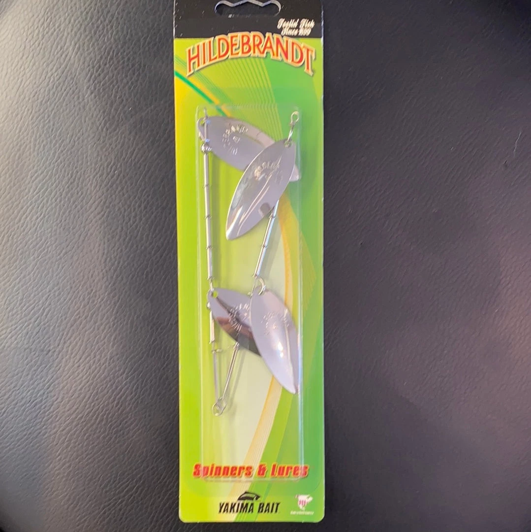 Willow leaf spinner available with double blade in Nickel or Gold finish. Willow leaf attractor with snap-loop hook eyelet. Blade shape imitates minnows.