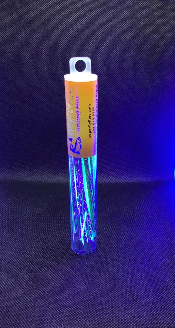 The mountain dew fly is a green and silver holographic fly with green glow. Rigged with green/glow beads, two double stacked hooks & 20lb leader. This is a great multi species fly for spring or dark water conditions.