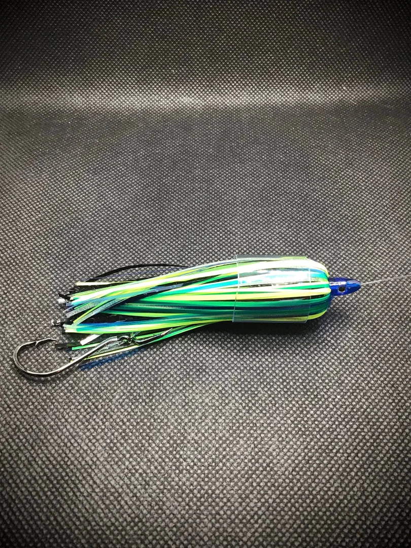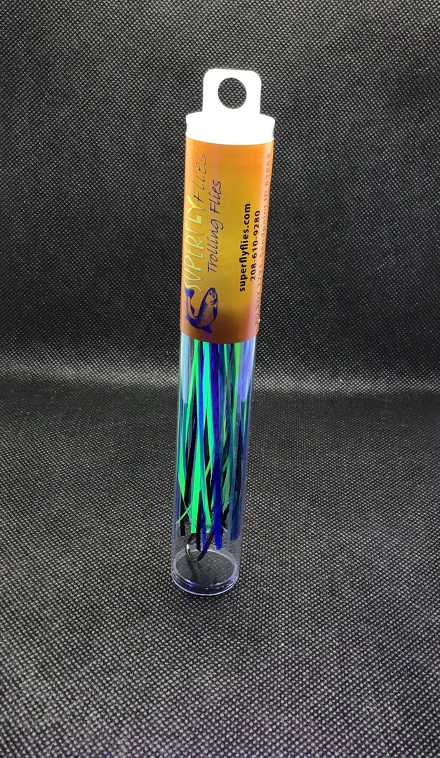 The Herring Aid Superfly is deadly if you are targeting Ocean run salmon. This Superfly has both UV and glow with a mix of colors of Chartreuse transparent blue with a hint of black. We have caught our limit with no bait added!!!