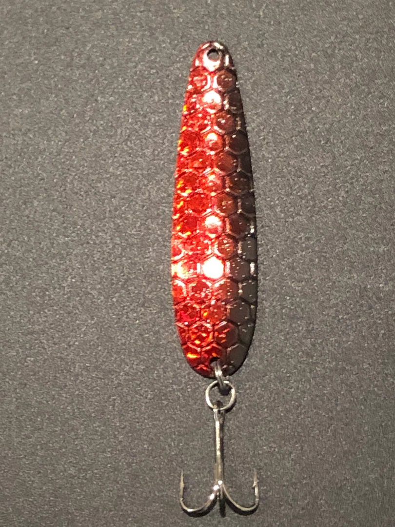 3 3/4” halographic trolling spoon with Gamakatsu treble hook.