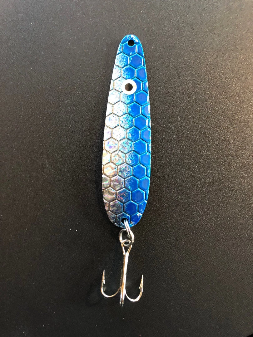 3 3/4” halographic trolling spoon with Gamakatsu treble hook.