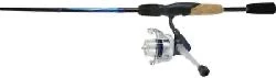 Features Include: Durable glass fiber rod blank construction, Comfortable EVA fore grips, Rear grip is split configuration EVA and cork, Multi-disc front drag washer system, 1 Ball bearing drive system, Reels are pre-spooled with monofilament line, Rods are 2-pieces for easy transportation.