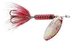 Since the 1950’s Worden’s original Rooster Tail has been and still is one of the most productive spinners around. Used to catch just about any gamefish, the Rooster Tail’s pulsating hackle tail and attractive spinning action will make fish strike, many times when nothing else will work. 1/8oz – size 10 treble hook.