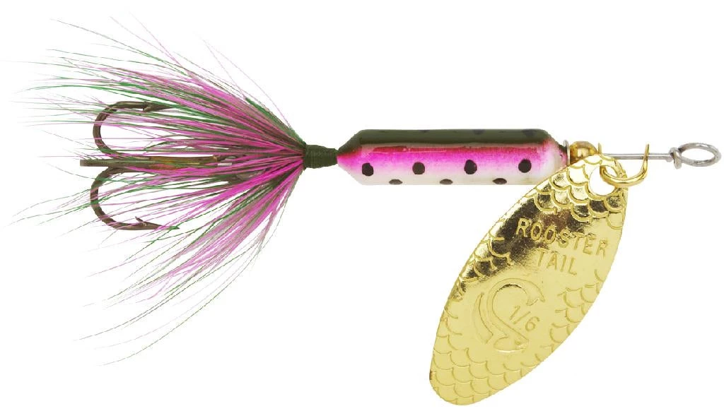 Since the 1950’s Worden’s original Rooster Tail has been and still is one of the most productive spinners around. Used to catch just about any gamefish, the Rooster Tail’s pulsating hackle tail and attractive spinning action will make fish strike, many times when nothing else will work. 1/8oz – size 10 treble hook.