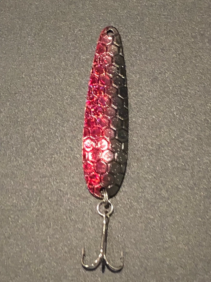 3 3/4” halographic trolling spoon with Gamakatsu treble hook.